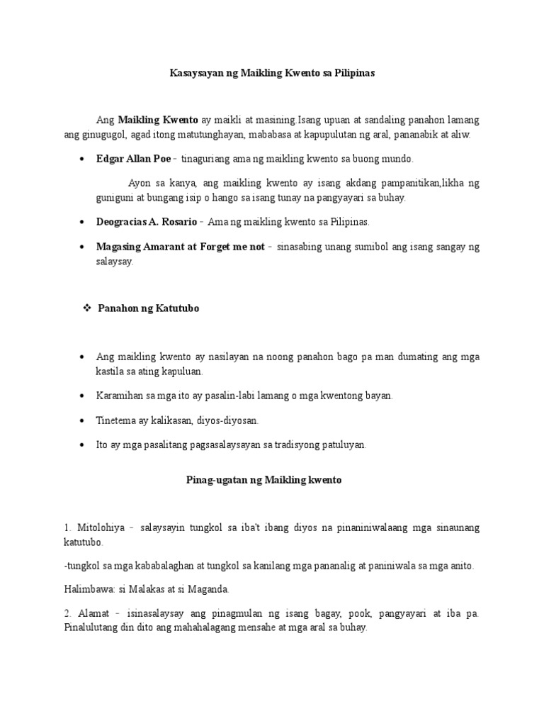 Ayon sa kanya ang maikling kwento ay. View Notes - M11KASTILA from ACCOUNTING 2083 at Polytechnic University of the Philippines. Ayon sa kanya ang maikling kwento ay isang akdang.