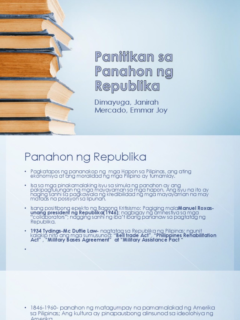 Ang Dula Pinasigla ng Unang Ginang Imelda Marcos ang dulaan sa panahong ito sa pamamagitan ng pagpapaayos ng lumang tanghalan at pagtatayo ng sentro ng. Kaligirang Pangkasaysayan Sumigla agad ang panitikang Pilipino pagkatapos na bumagsak ang kapangyarihan ng mga Hapon sa Asya. 30 1972 Hunyo 30 1981 Aug.