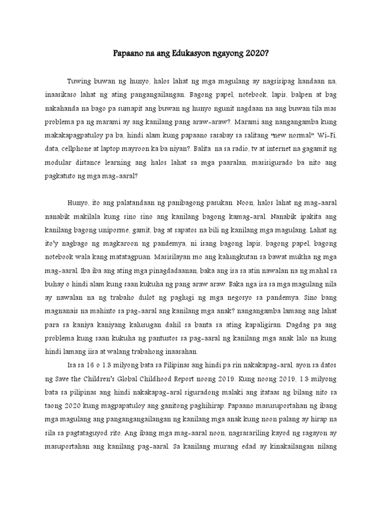 Duque Angelica Papaano Na Ang Edukasyon Ngayong 2020 Talumpati