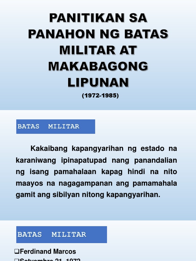 Panitikan Sa Panahon Ng Batas Militar At Makabagong Lipunan 1
