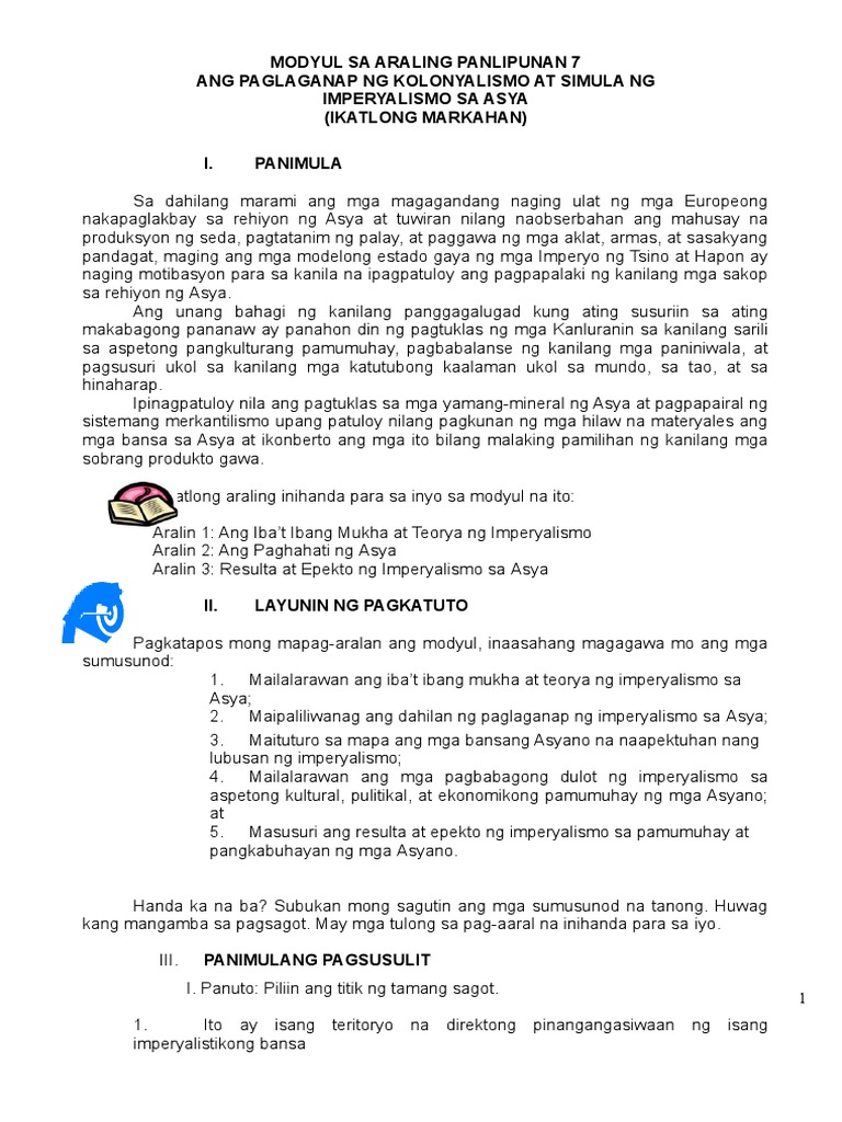 Modyul 7 Ang Paglaganap Ng Kolonyalismo At Simula Ng Imper