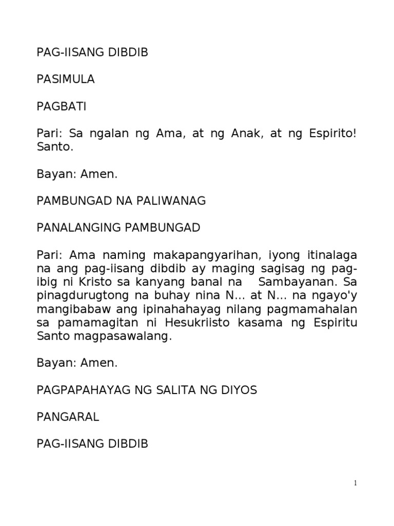 20122019 I sa sa mga pinaka importanteng parte ng kasal ay ang pagbibigay ng mensahe ng pari sa mga ikinakasal. 13032012 Sa inyong araw ng kasal hiling ko na kayo ay manatiling masaya sa piling ng isat isa. Ayon sa CBCP inalis na ang mga abay sa kasal at tanging ang papayagan lamang sa seremonya ay ang bride at groom mga magulang nila at ilang.